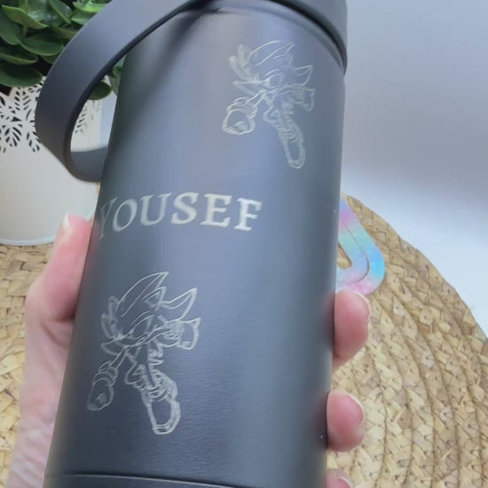 Stay hydrated in style with this durable engraved water bottle! Perfect for school, gym, or wherever your day takes you, make it your new everyday essential!